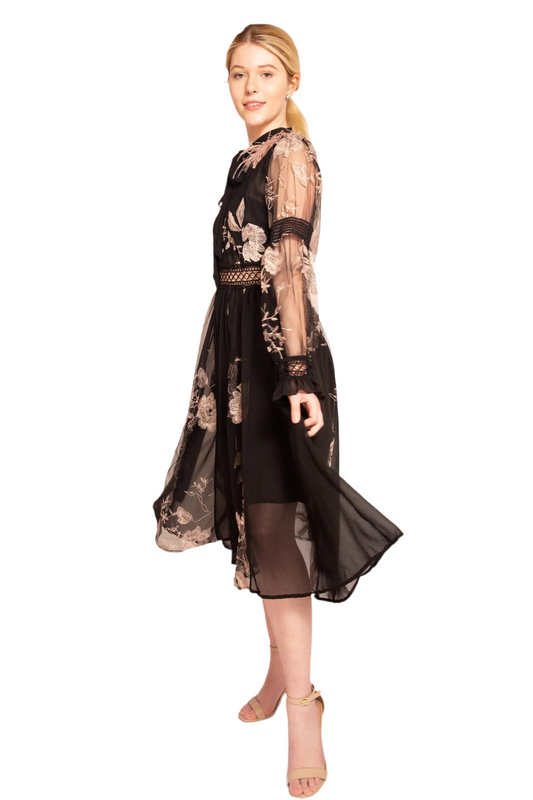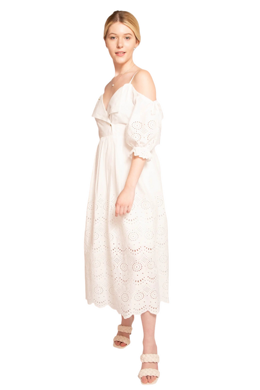 Aria Embroidered Cut-out Puff Shoulder Maxi Dress
